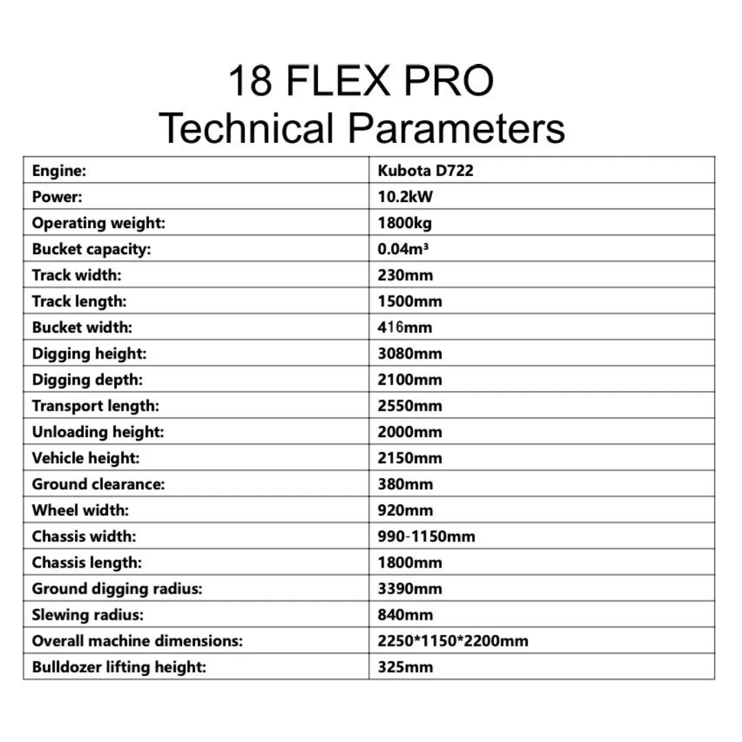 The 2025 TYPHON 18 FLEX PRO Mini Excavator is a versatile and efficient machine, designed to meet the demands of various projects while ensuring operator comfort and environmental compliance.